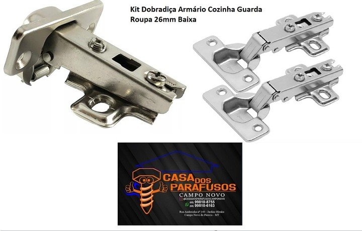 Kit Dobradiça Armário Cozinha Guarda Roupa 26mm Baixa