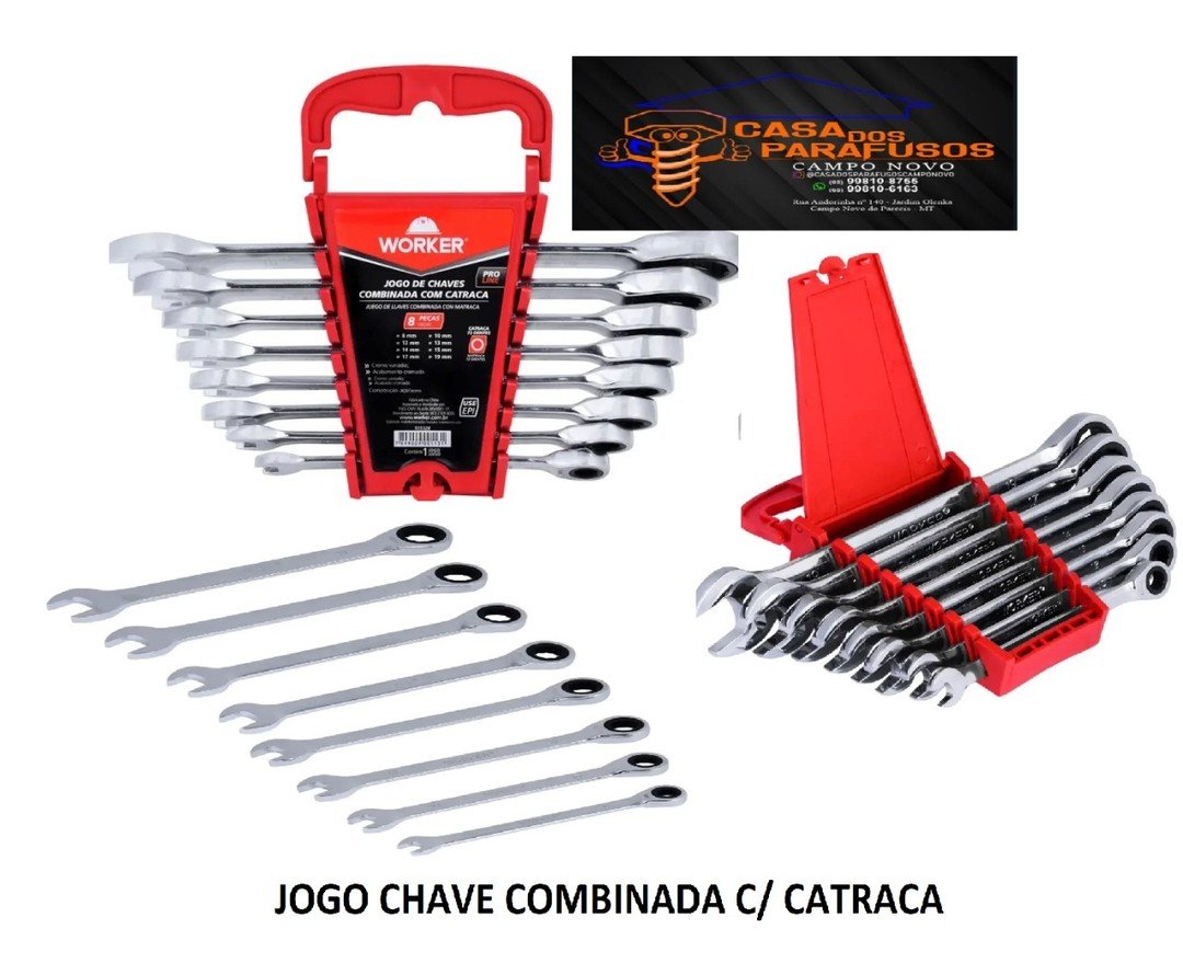 chave Philips, chave combinada, alicates, martelo, marretas, chave canhão, chave Allen, chave Torx, chave de biela, chave ajustável, chave grifo